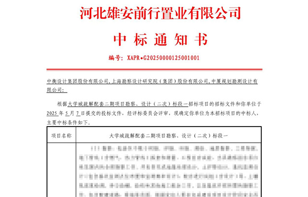 雄安新區大學(xué)城疏解配套二期項目勘察設計標段一▲中標通知書(shū)(部分截圖) 繼雄安新區啟動(dòng)區西部小學(xué)項目之后,近日中衡設計憑借卓越的專(zhuān)業(yè)實(shí)力與豐富的項目經(jīng)驗再度脫穎